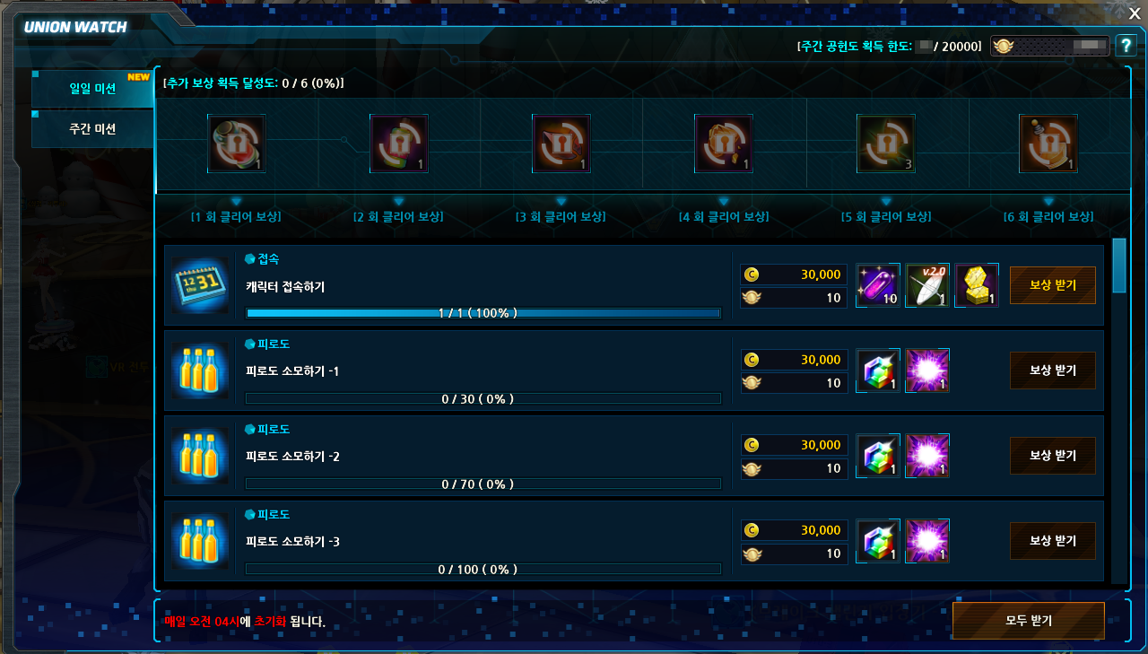 - 일일 미션은 매일 오전 4시에 초기화됩니다.